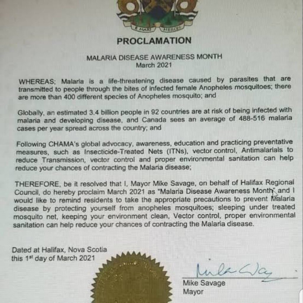 The CHAMA FAMILY lack words to capture and appreciate His Worship, Mayor Mike Savage for the demonstrated magnanimity in declaring the whole month of March as MALARIA AWARENESS MONTH. You have literarily given us the wind to fly.