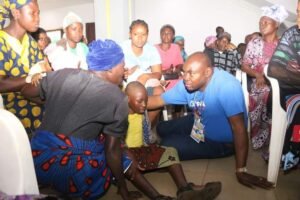 During our recent medical mission, I was moving around around in the crowd when I spotted a young girl with her mother. I noticed that the girl was seating on the ground and feeling unconnected with the environment. I was moved to find out why. I sat down on the floor, met with her where was in other to be present.